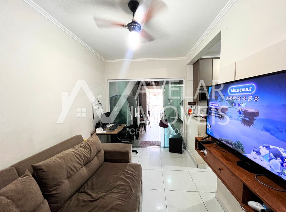 O imóvel conta com dois dormitórios, uma aconchegante sala de estar, banheiro social e uma cozinha equipada com móveis planejados. Além disso, oferece uma lavanderia funcional, um amplo quintal sendo perfeito para quem valoriza o espaço ao ar livre e uma garagem coberta com vaga para até dois carros.